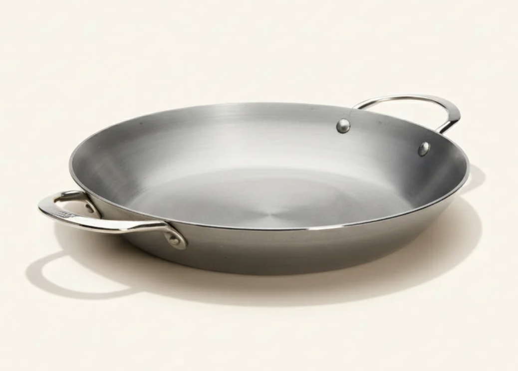 Bring the vibrant flavors of Spain into your kitchen with our Mineral B Carbon Steel Paella Pan. Crafted from high-quality carbon steel, this pan is designed to heat evenly and maintain the perfect cooking temperature, essential for creating the authentic socarrat: the deliciously caramelized crust that is a hallmark of perfect paella.