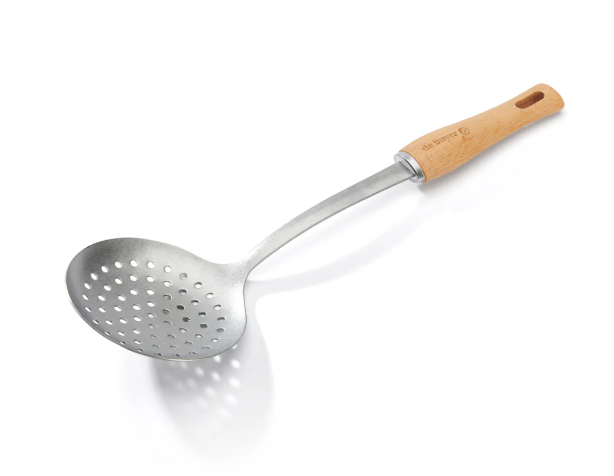 Stonewashed stainless steel ensures your utensils withstand high temperatures while giving it a vintage look. The beechwood handle provides you with a firm grip that remains cool to the touch. The elegant look means that you can use your utensils for cooking your favorite meal in the kitchen and then serving it to guests in the dining room.