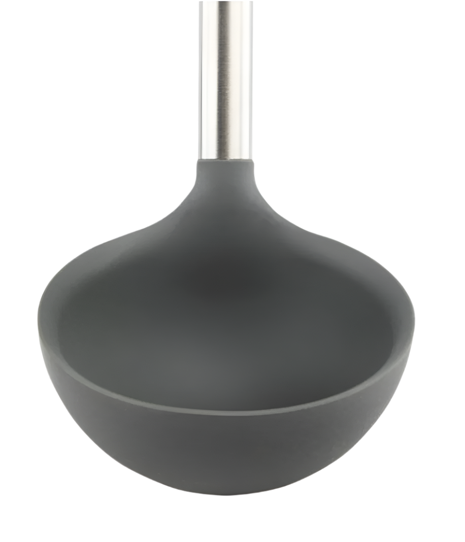 Scoop and serve soups, stews and sauces with the durable silicone ladle with stainless steel handle.