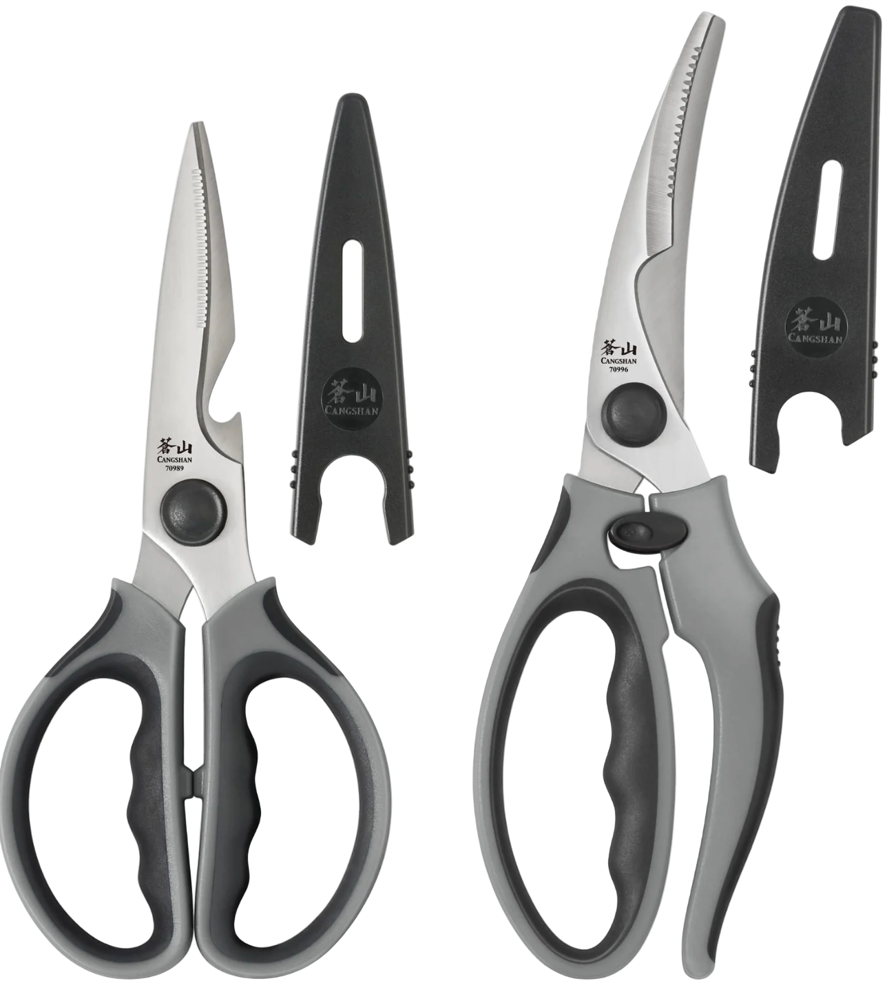 Cangshan shears are crafted from durable 420 stain-resistant steel and sharpened to a precise edge. The utility shears are versatile cutting tools, perfect for the kitchen and crafting. The spring-loaded poultry shears are robust enough to cut through bone easily. These kitchen scissors have been designed to be comfortable to use and provide a secure grip.